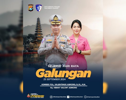 MAMUJU, – Direktur Lalu Lintas Polda Sulawesi Barat (Dirlantas Polda Sulbar), Kombes Pol Valentinus Virasandy Asmoro, menyampaikan ucapan selamat merayakan Hari Galungan yang jatuh pada 25 September 2024.