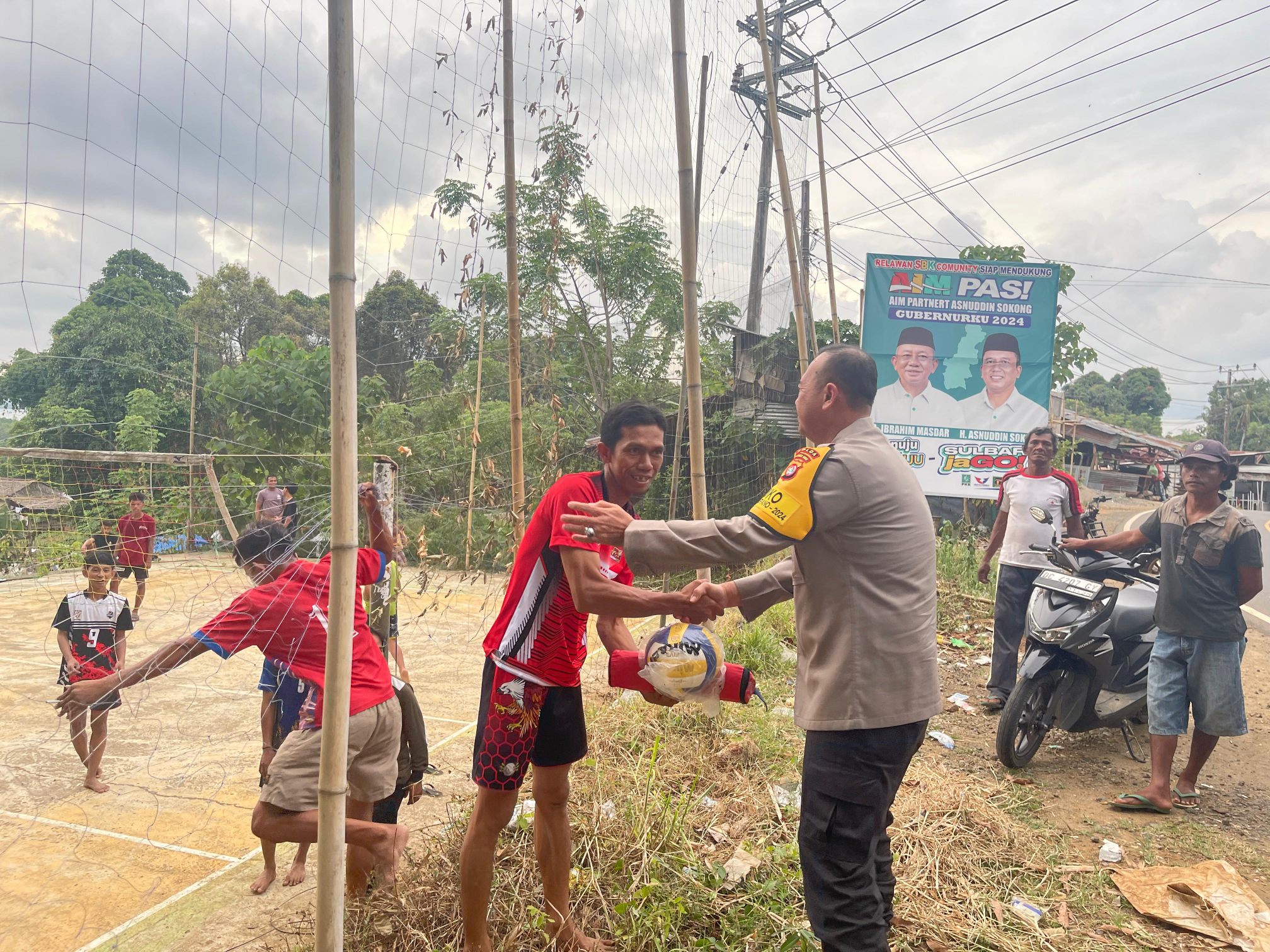 Tanpa ragu, Kapolda Sulbar yang dikenal ramah ini berhenti dan menyapa para pemain volley yang tengah asyik bertanding. Dalam kesempatan tersebut, Irjen Pol Adang Ginanjar tak hanya memberikan dukungan moral, tetapi juga memberikan bantuan berupa satu set bola dan net untuk menunjang kegiatan olahraga warga. Bantuan tersebut disambut hangat dan penuh antusias oleh warga setempat.