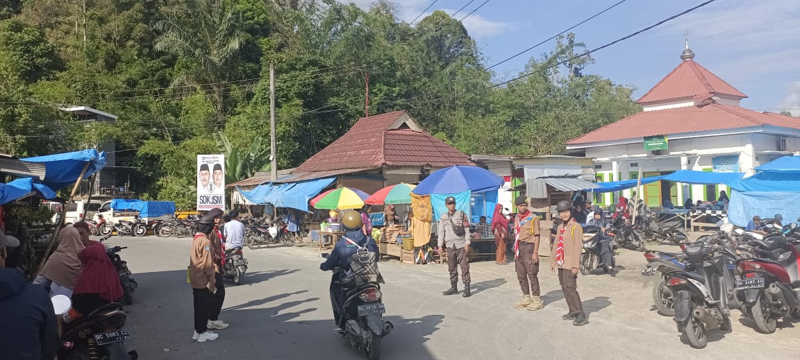 MAMASA–Polsek Mambi melaksanakan pengamanan dan Pengaturan Lalu Lintas di depan Pasar Tradisional Mambi, Kecamatan Mambi, Kabupaten Mamasa, 03 Oktober 2024