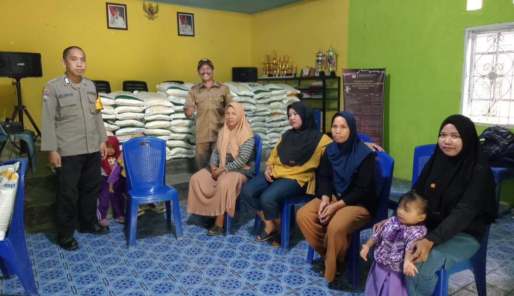 Dalam kegiatan ini, Bhabinkamtibmas berperan aktif menjaga ketertiban dan kelancaran proses distribusi bantuan beras tersebut