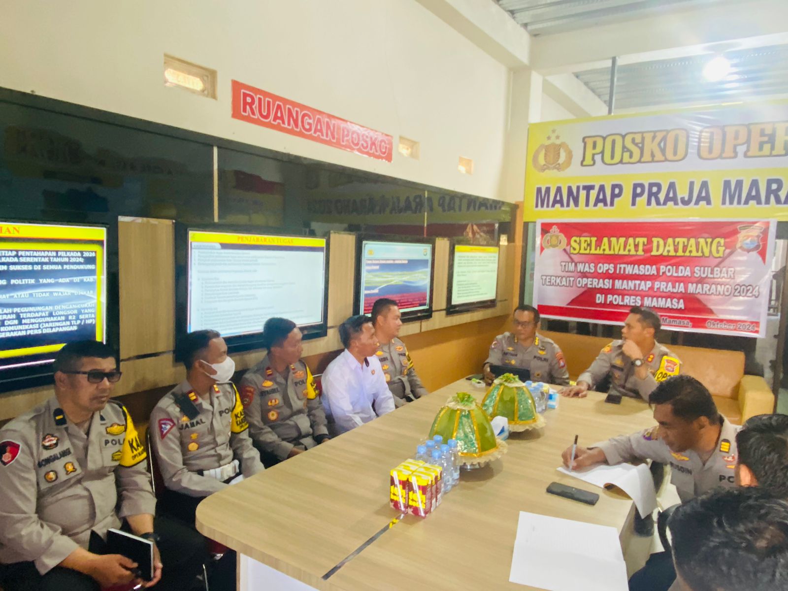 MAMASA — Kepolisian Resor Mamasa menerima kunjungan Tim Wasops Itwasda Polda Sulbar dalam rangka pelaksanaan Pengawasan Operasi Mantap Praja (OMP) Marano 2024. Selasa 08 Oktober 2024