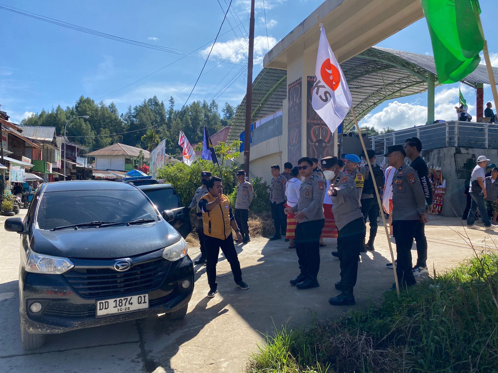 MAMASA – Pengamanan Kampanye Akbar calon Bupati dan Wakil Bupati Kabupaten Mamasa di Lapangan Kondosapata, Mamasa. Acara ini melibatkan petugas pengamanan gabungan dari TNI, Polri, dan Satpol PP untuk memastikan kelancaran serta keamanan kegiatan yang dihadiri oleh ribuan peserta, tokoh nasional, dan tokoh lokal, serta sejumlah anggota DPR dan tokoh masyarakat. Sabtu, 9 November 2024