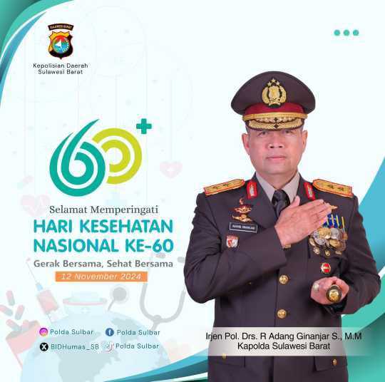 MAMUJY — Kepala Kepolisian Daerah Sulawesi Barat (Kapolda Sulbar), Irjen Pol. Adang Ginanjar, memberikan ucapan selamat atas peringatan Hari Kesehatan Nasional (HKN) yang ke-60 pada tahun 2024 ini.