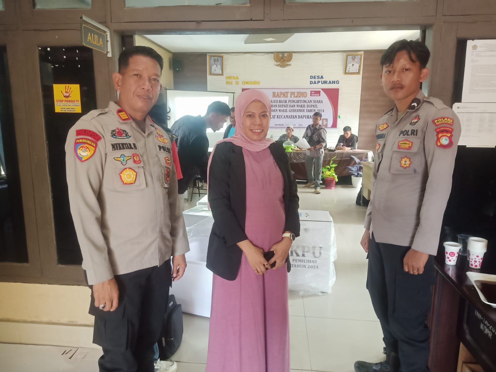 Tempat Rekapitulasi Surat Suara PPK Kec. Dapurang Hasil Pilgub/Pilkada dari 27 TPS dilaksanakan di Aula kantor camat Dapurang dan giat sementara berlangsung dalam keadaan aman kondusif di bawah kendali Personil PAM TNI/POLRI.