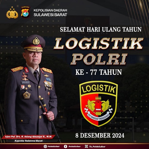 MAMUJU – Kepala Kepolisian Daerah (Kapolda) Sulawesi Barat, Irjen Pol. Drs. R. Adang Ginanjar S., M.M, bersama dengan seluruh staf dan jajaran kepolisian di wilayah tersebut, mengucapkan selamat ulang tahun yang ke-77 kepada unit Logistik Polri.