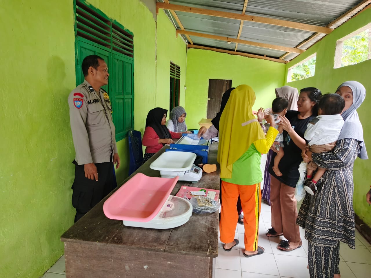 Dalam kesempatan tersebut, Bhabinkamtibmas turut berdialog dengan para petugas kesehatan, serta masyarakat yang hadir dalam kegiatan Posyandu, guna mengetahui langsung kondisi layanan yang diberikan.