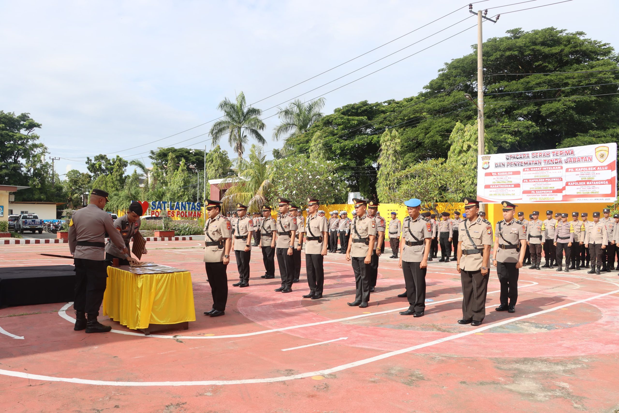 POLRES POLMAN — Polres Polman menggelar upacara serah terima jabatan penting di lingkungan Polres Polman pada hari ini, yang dipimpin langsung oleh Kapolres Polman Akbp Anjar Purwoko di Lapangan Apel Mapolres Polman Jl. Dr. Ratulangi No. 17 Pekkabata Kec. Polewali Kab. Polman Jumat (03/01/25)