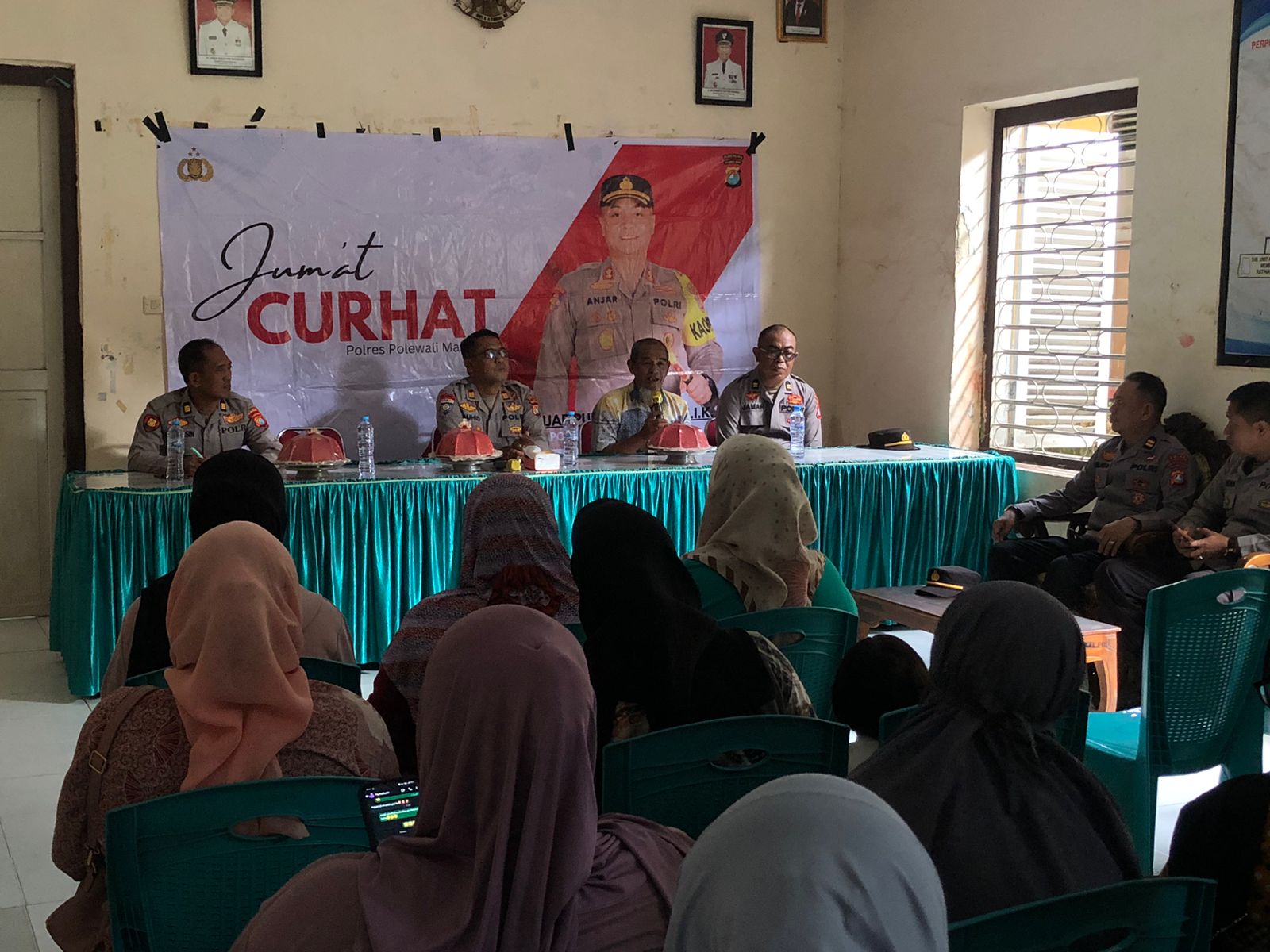 POLRES POLMAN – Dalam rangka mendekatkan diri dengan masyarakat, Kasat Binmas Polres Polman, AKP Muhammad Tauhid di dampingi Wakapolsek Polewali Iptu Jamaruddin, melaksanakan kegiatan Jumat Curhat di di Aula Kantor Kel Polewali Kec Polewali Kab. Polman. Jumat (10/01/25)