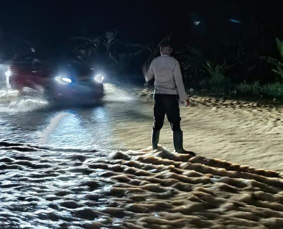 POLRES PASANGKAYU – Tingginya curah hujan di sebagian besar wilayah Kabupaten Pasangkayu khususnya di Jl.Trans Sulawesi Keluraha Martajaya Kec.Pasangkayu Kab. Pasangkayu. membuat debit air di sungai-sungai meningkat. Seperti yang terjadi Pada Hari Minggu tanggal 26 Januari 2025 sekitar Pukul 23.00 Wita. Bhabinkamtibmas Polsek Pasangkayu Aipda Ilyas Ondo melaksanakan giat pemantauan banjir yang terjadi di desa binaan.