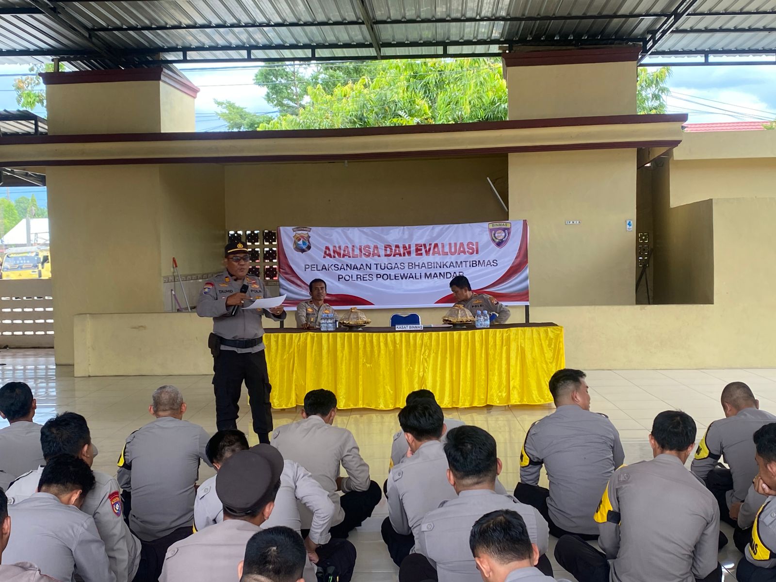 Kasat Binmas Polres Polman AKP Muhammad Tauhid memberikan pengarahan kepada seluruh personil Bhabinkamtibmas terkait perkembangan situasi kamtibmas di wilayah masing-masing.