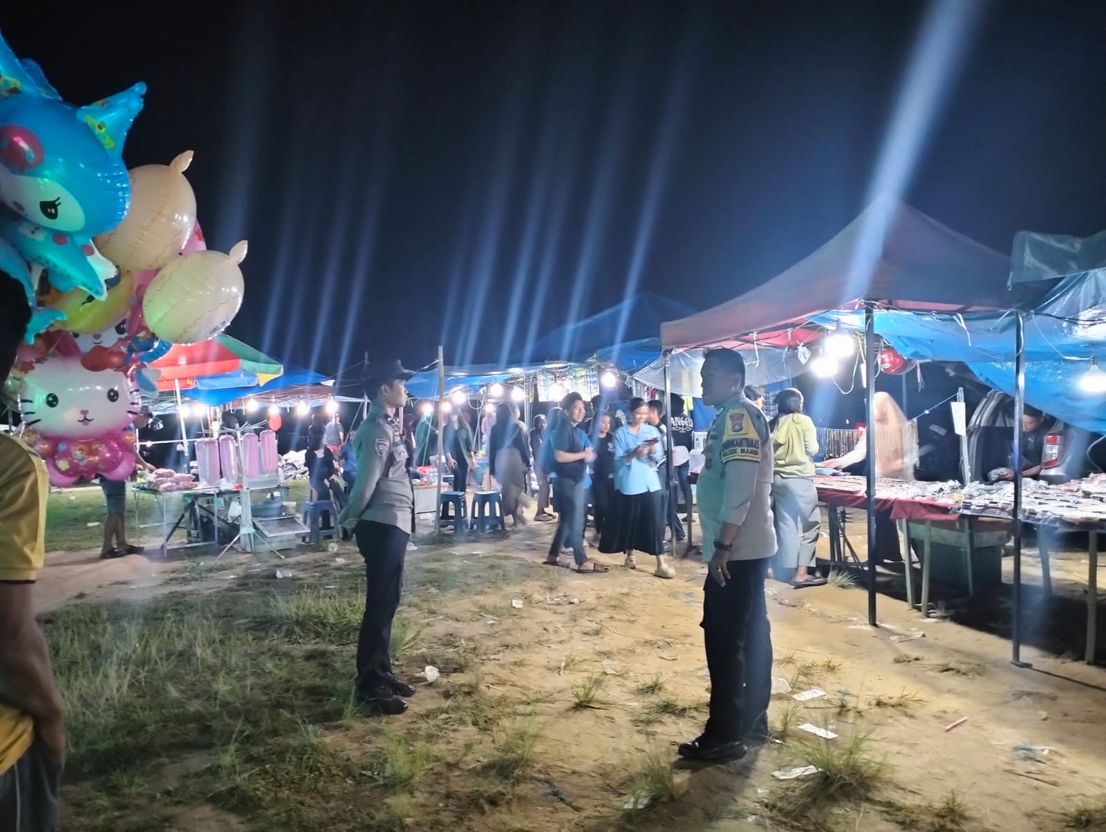 POLRES MAMASA–Dalam upaya menjaga keamanan dan ketertiban masyarakat, jajaran Polsek Mambi melaksanakan kegiatan monitoring dan pengamanan pasar malam yang berlangsung di lapangan sepak bola Mambi, Kelurahan Mambi, Kecamatan Mambi, Kabupaten Mamasa, Sulawesi Barat, pada Jumat malam sekitar pukul 20.30 WITA, 13 Juni 2025