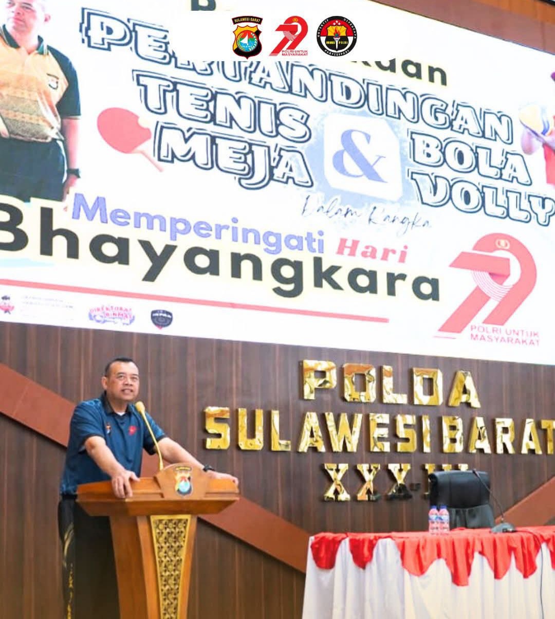 MAMUJU – Dalam rangka memeriahkan Hari Bhayangkara ke-79 tahun 2025, Kepala Kepolisian Daerah Sulawesi Barat (Kapolda Sulbar) Irjen Pol. Adang Ginanjar secara resmi membuka Turnamen Tenis Meja yang digelar di Aula Marannu Mapolda Sulbar, Selasa (24/6/2025).