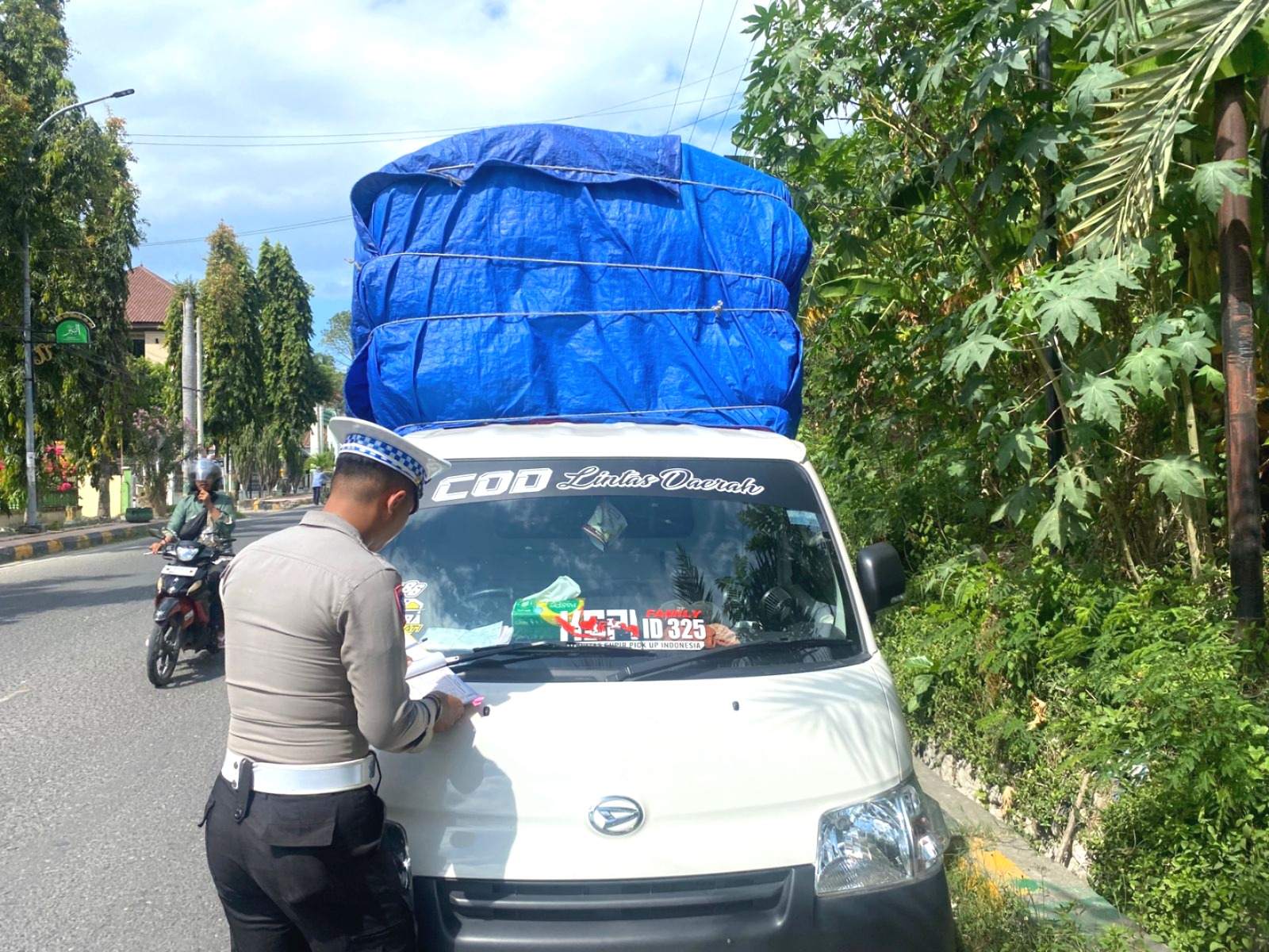 Bentuk penindakan dilakukan melalui pemberian teguran tertulis kepada para pengemudi yang melanggar, sekaligus dilakukan sosialisasi secara langsung di lokasi.