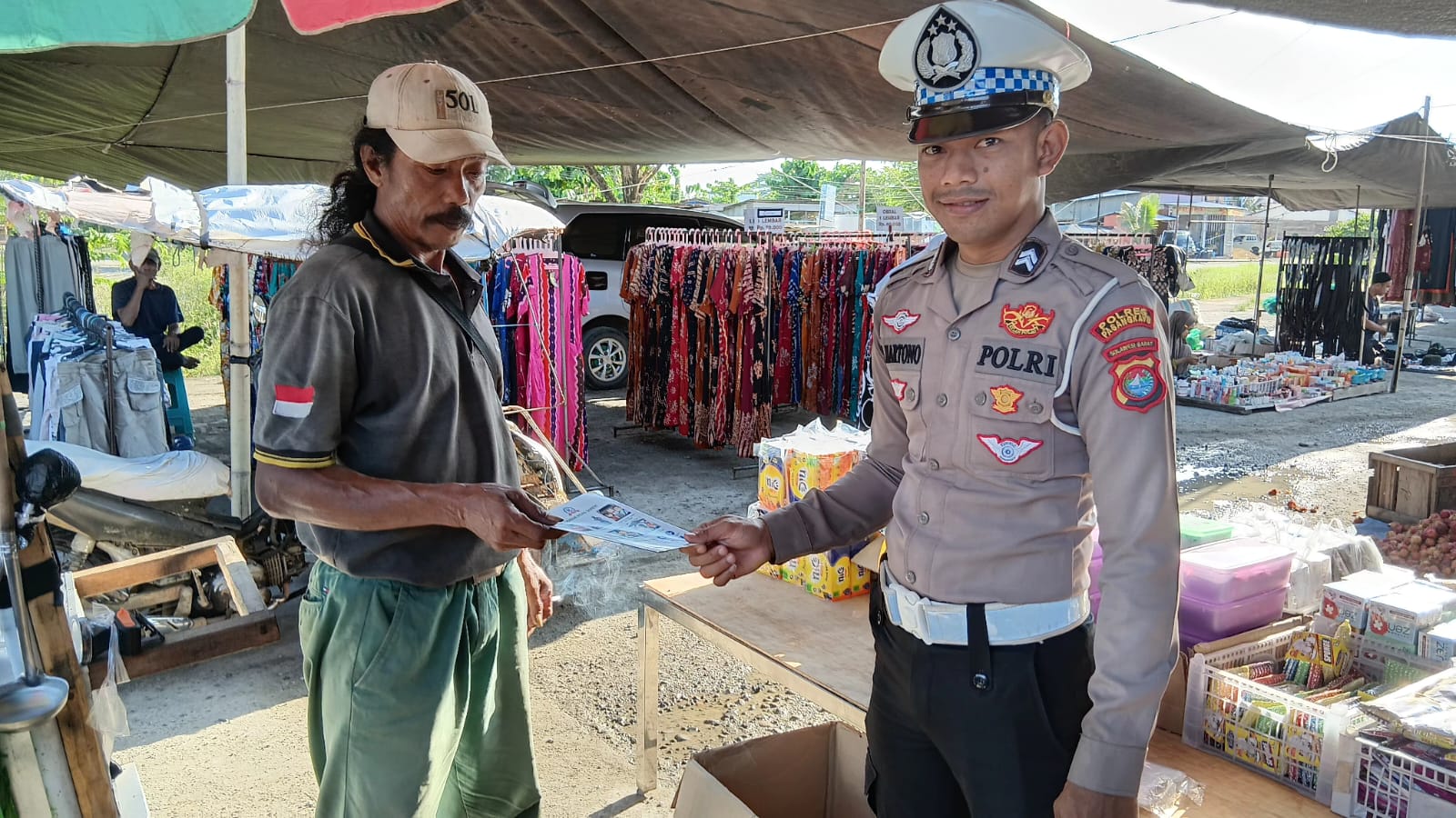 Selain memberikan himbauan lisan, petugas juga membagikan brosur dan stiker edukatif yang berisi pesan-pesan keselamatan berlalu lintas. Masyarakat pun terlihat antusias dan menyambut baik kegiatan tersebut.