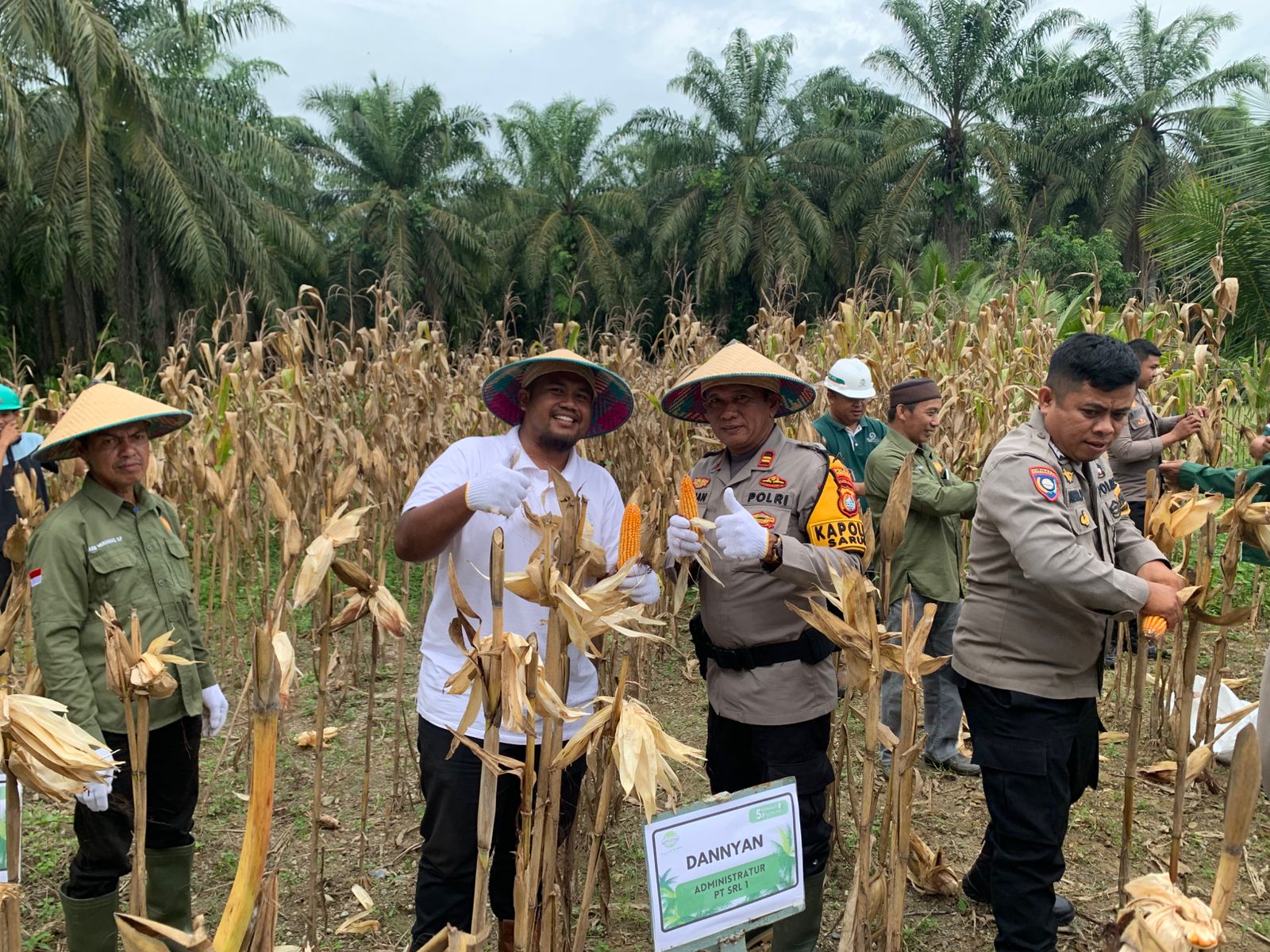 Panen dilakukan di atas lahan seluas 35 are milik PT. Surya Raya Lestari 1 dengan varietas jagung Bisi 231 dan hasil panen mencapai 700 kilogram.