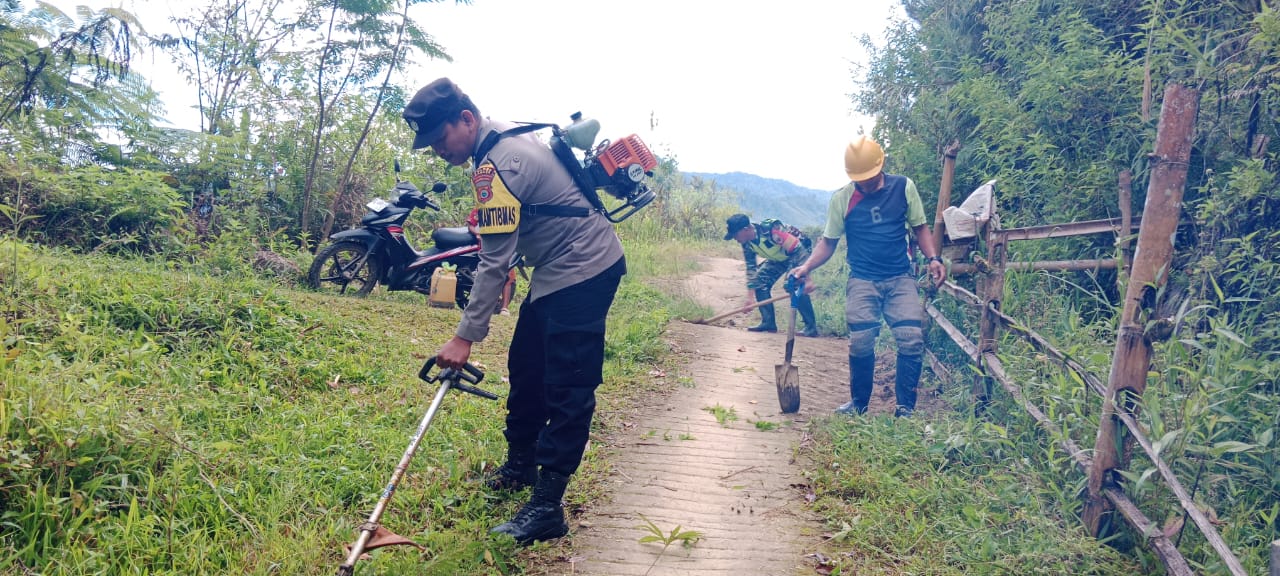 Kehadiran aparat TNI-Polri dalam kegiatan ini menunjukkan sinergitas yang kuat antara unsur keamanan dan masyarakat dalam menjaga lingkungan tetap bersih dan sehat. Bhabinkamtibmas Brigpol Andi Alfian terlihat aktif berbaur, mengayomi warga sembari turut serta membersihkan sampah dan semak-semak yang mengganggu akses jalan.