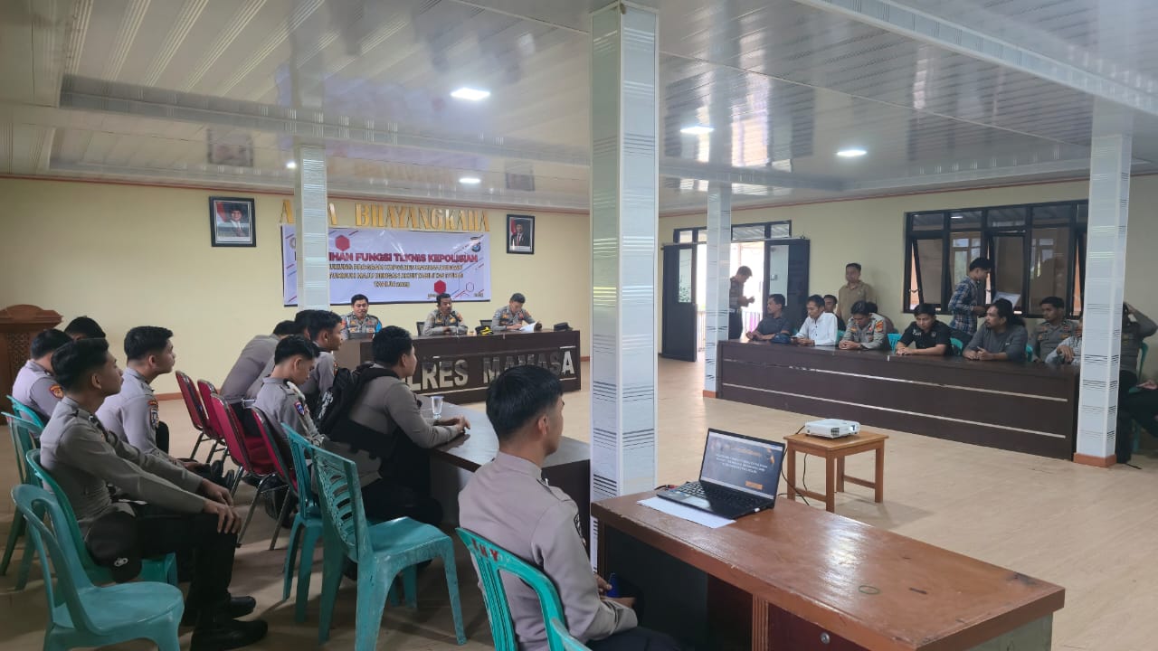 POLRES MAMASA–Dalam rangka mendukung program kerja Kapolres Mamasa bertajuk Tumbuh Maju dengan Akuntabilitas (TUMA), Polres Mamasa melalui Bagian SDM menggelar kegiatan Pelatihan Fungsi Teknis Kepolisian (Pelatihan Fungsi TIK) pada Selasa, bertempat di Aula Bhayangkara Polres Mamasa, 15 Juli 2025