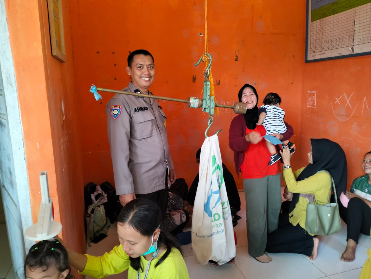 Aipda Ahmad tak sekadar memantau. Ia berinteraksi langsung dengan para ibu dan balita yang hadir di Posyandu. Sambil mendampingi petugas medis, ia melihat langsung proses penimbangan, pemberian vitamin, imunisasi, dan penyuluhan gizi. Kehadirannya tidak hanya memberi rasa aman, tapi juga motivasi bagi warga untuk terus aktif memanfaatkan layanan kesehatan.