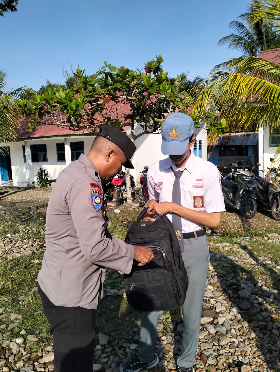 Dalam giat tersebut, Aipda Warju melakukan pemeriksaan barang bawaan siswa untuk memastikan tidak ada yang membawa barang-barang terlarang atau berpotensi mengganggu keamanan dan ketertiban di lingkungan sekolah. Langkah ini sebagai bentuk pencegahan dini terhadap kenakalan remaja sekaligus menjaga situasi tetap kondusif.