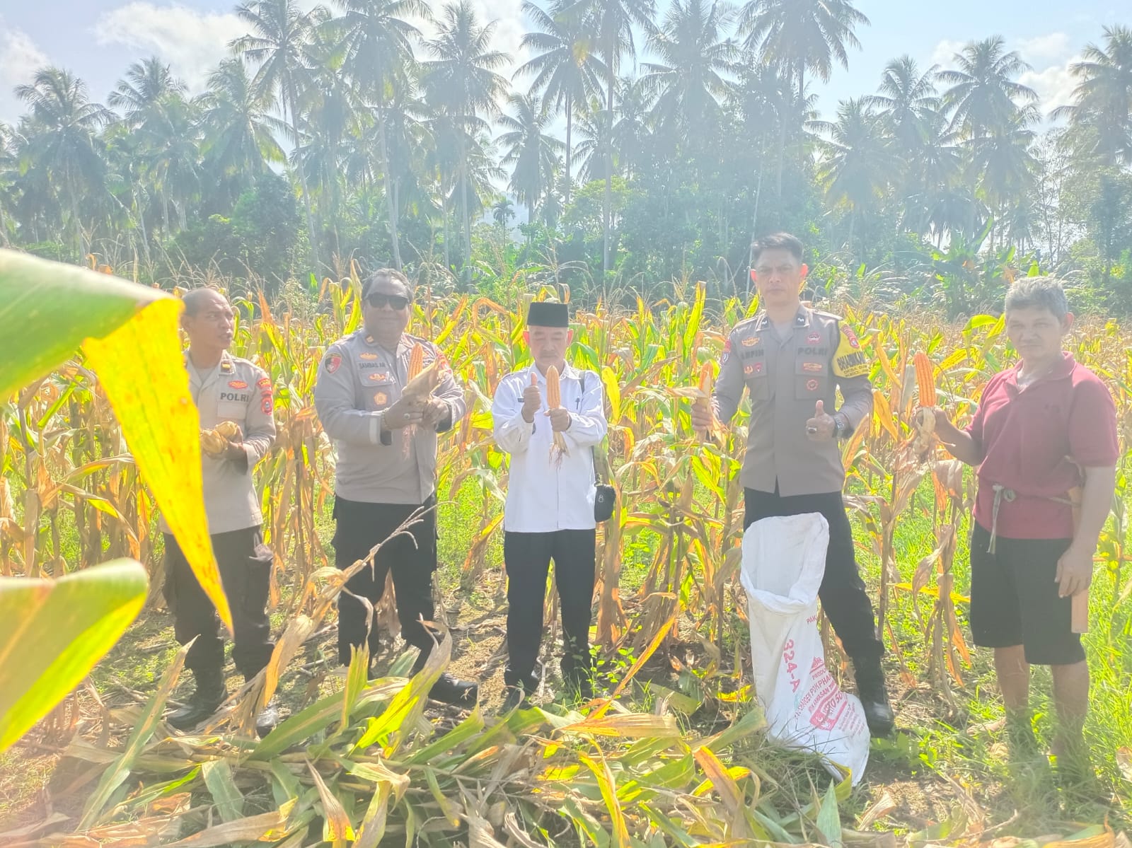 POLRES POLMAN – Kapolsek Polewali, IPTU Sambas AR, bersama Kapolsubsektor Anreapi, IPDA Surman Salissi, serta personel Subsektor Anreapi melaksanakan kegiatan panen jagung di Dusun Basarang, Desa Duampanua, Kecamatan Anreapi, Kabupaten Polewali Mandar, Rabu (01/10/25).