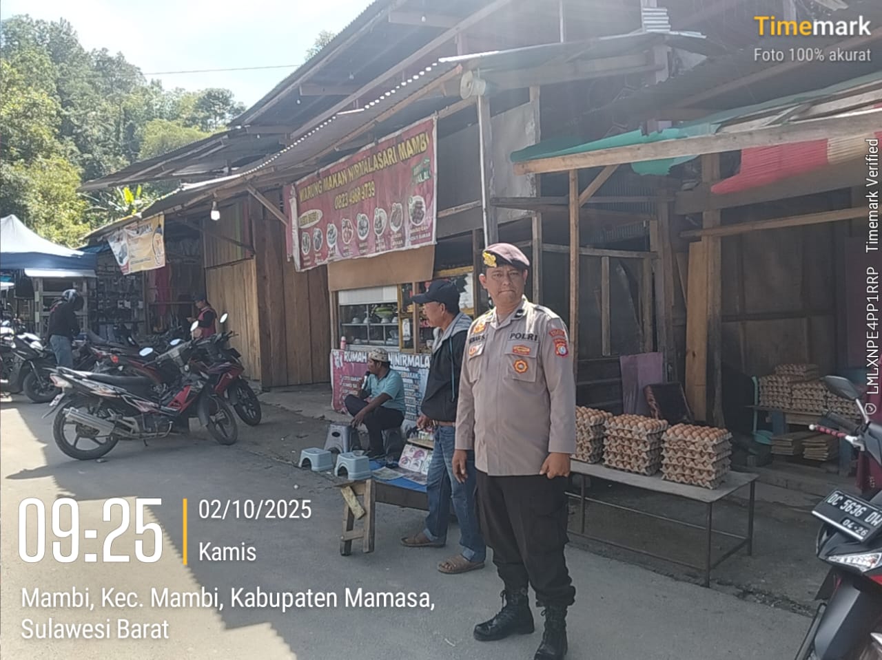 POLRES MAMASA–Personel Polsek Mambi melaksanakan kegiatan pengamanan (PAM) sekaligus pengaturan arus lalu lintas di sekitar Pasar Mambi, Kecamatan Mambi, Kabupaten Mamasa. Kegiatan ini berlangsung pada Kamis pagi, pukul 08.00 hingga 11.00 WITA, tepatnya di jalan poros Malabbo–Mambi–Mamuju, yang merupakan jalur utama di depan Pasar Mambi, 02 Oktober 2025