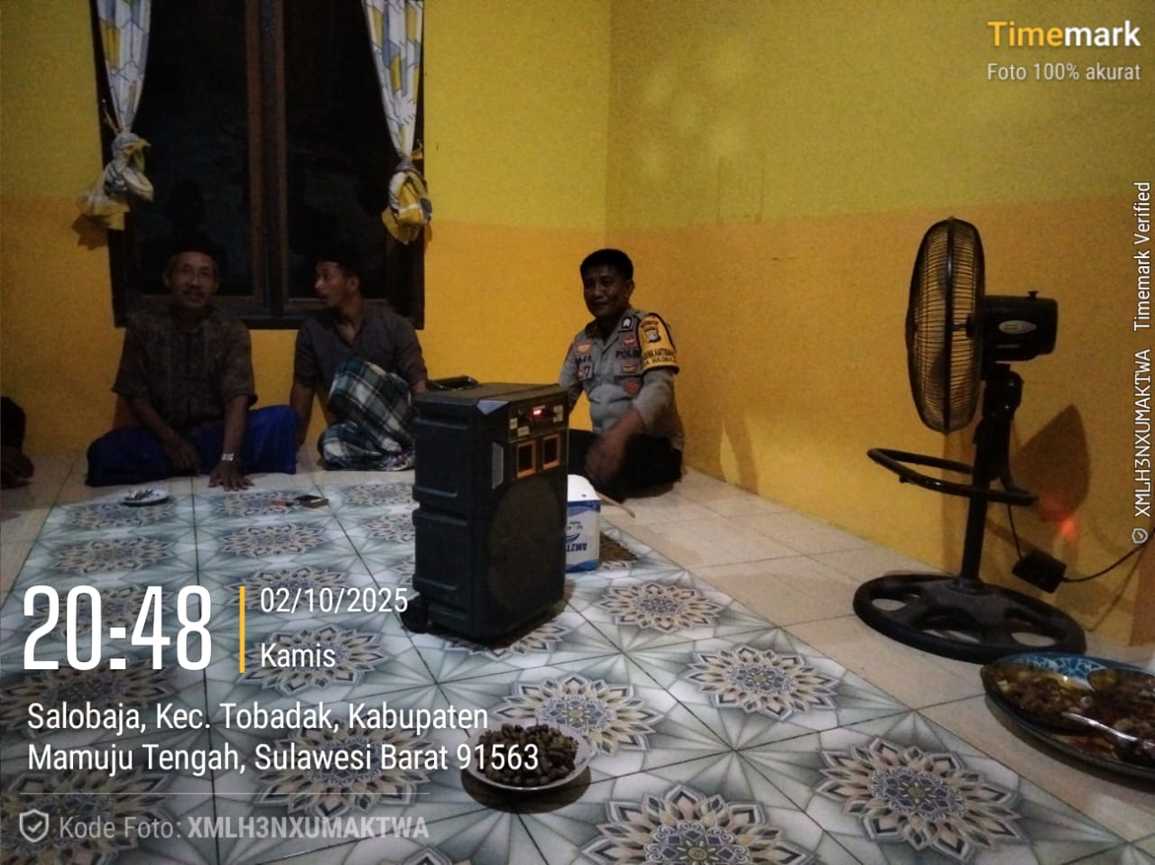 Polres Mamuju Tengah – Dalam rangka mempererat tali silaturahmi dengan masyarakat, Bhabinkamtibmas Desa Sulobaja, Brigpol Rajamang, menghadiri kegiatan Pengajian Majelis Dzikir di Desa Sulobaja, Kecamatan Tobadak, Kabupaten Mamuju Tengah. Jumat (3/10/2025).