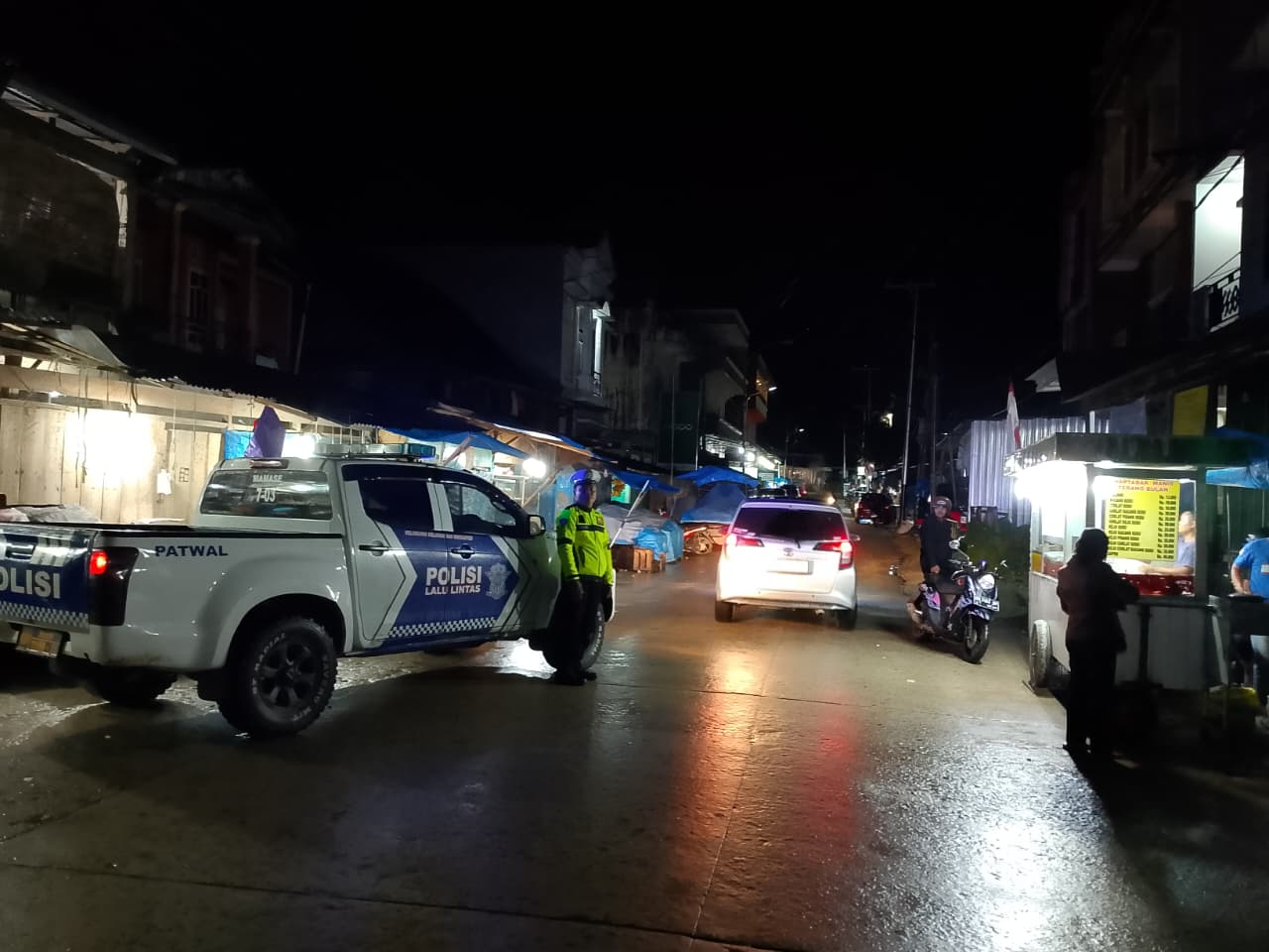 Kegiatan patroli malam ini dipimpin oleh personel piket Lantas Regu II, yakni Briptu Adi Saputra dan Bripda Yusril Kelvin, dengan menyalakan lampu rotator biru pada kendaraan dinas sebagai simbol kehadiran polisi di tengah masyarakat.