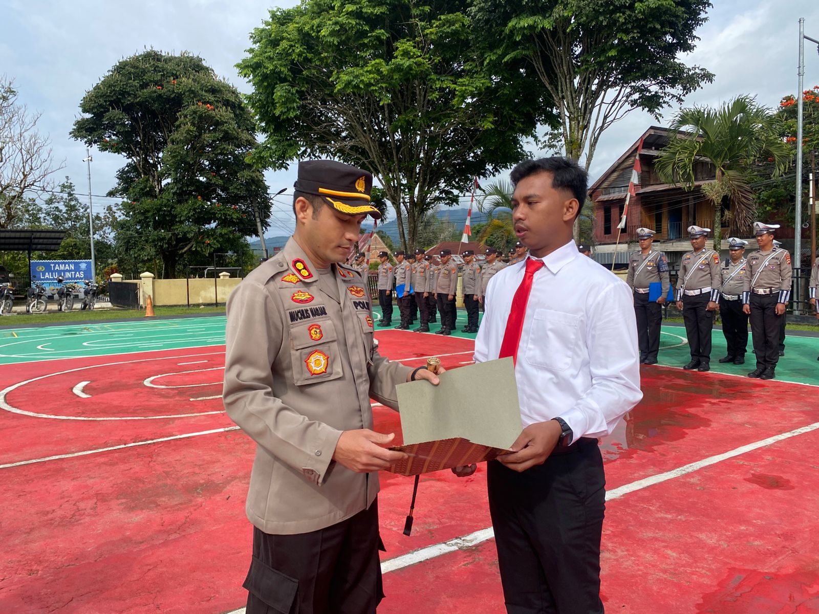 Usai apel, kegiatan dilanjutkan dengan pemberian ucapan selamat kepada Briptu Rulsi dari seluruh anggota Polres Mamasa. Suasana penuh kehangatan dan rasa bangga menyelimuti momen tersebut.