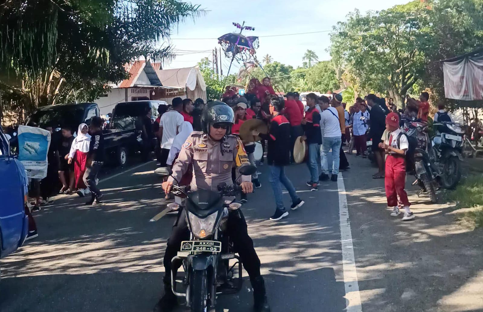 Kegiatan yang digelar oleh Bapak Zulkifli ini berlangsung meriah, dihadiri oleh warga dari berbagai desa sekitar. Aipda Hamdani tidak hanya mengawal jalannya acara, tetapi juga melakukan pengaturan arus lalu lintas di sepanjang jalan Trans Sulawesi, memastikan iring-iringan kuda hias “Sayyang Pattuddu” berjalan lancar tanpa hambatan.