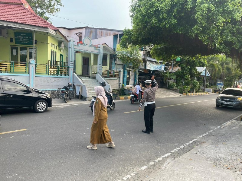 Dalam kegiatan tersebut, personel Sat Lantas turut membantu menyeberangkan pelajar, mengatur arus lalu lintas di depan sekolah dan kawasan perkantoran, serta mengingatkan pengendara agar selalu tertib dan mematuhi aturan berlalu lintas.