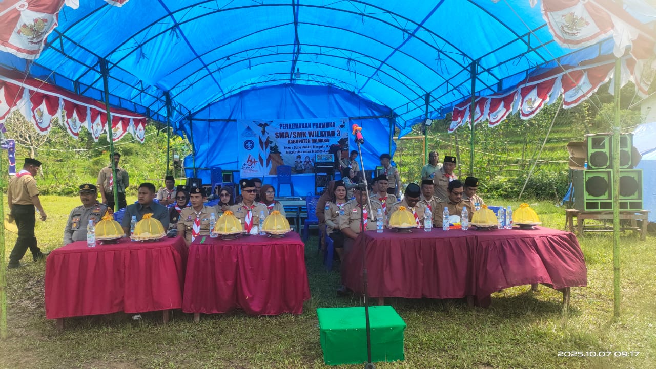 Mamasa, 7 Oktober 2025 – Suasana semarak terlihat di Lapangan Sepak Bola Panetean, Dusun Bapapane, Desa Panetean, Kecamatan Aralle, Kabupaten Mamasa, saat upacara pembukaan Perkemahan Pramuka Tingkat SMA/SMK se-Wilayah 3 resmi digelar, Selasa pagi sekitar pukul 09.00 WITA. Kegiatan bertema “Satya Bhakti, Mengukir Karsa, Merajut Asa untuk Indonesia Jaya” ini diikuti sekitar 420 peserta yang terdiri dari siswa-siswi SMA dan SMK, didampingi guru pembina masing-masing sekolah.