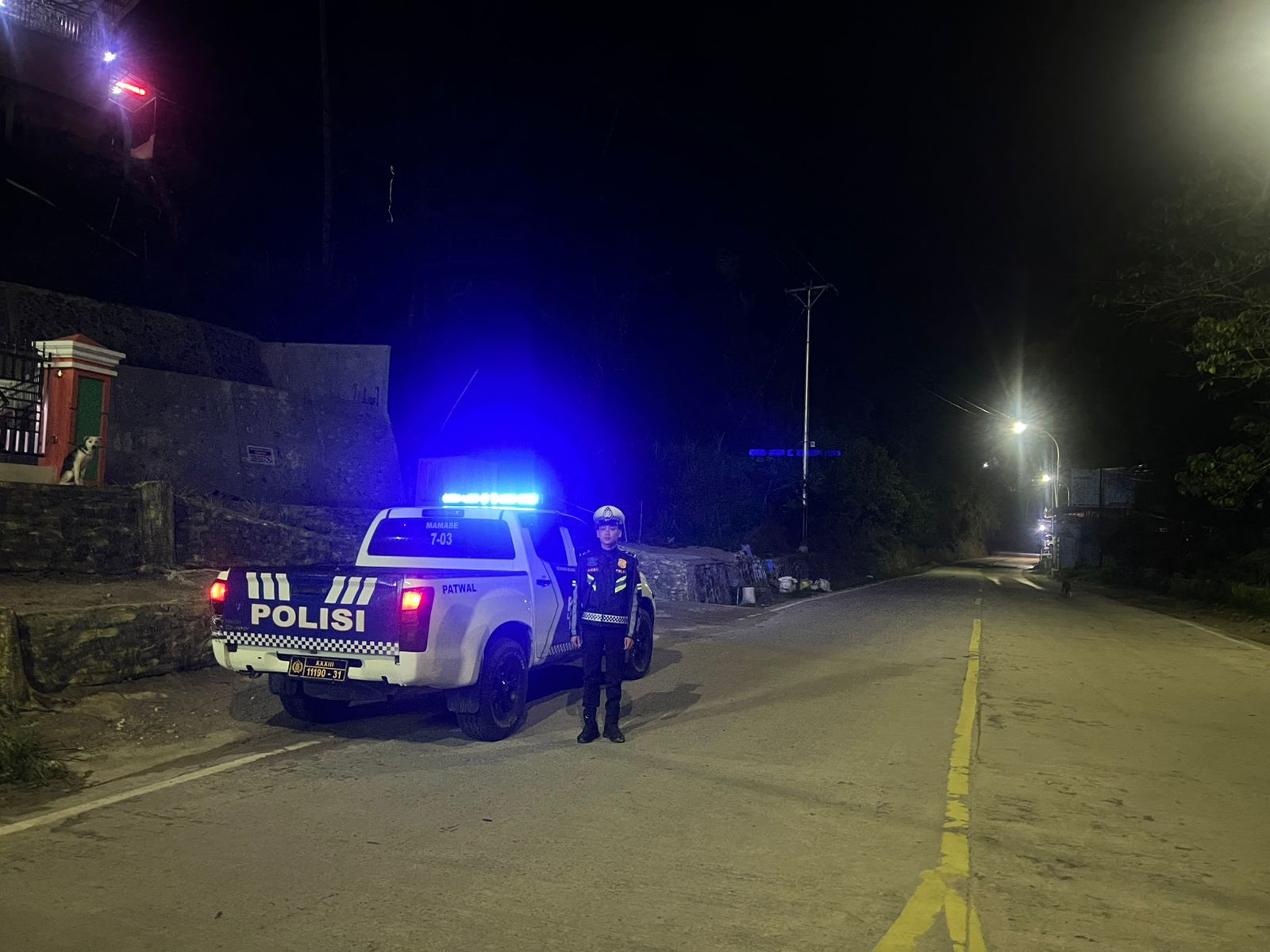 MAMASA – Satlantas Polres Mamasa kembali menunjukkan kehadiran aktifnya di tengah masyarakat melalui kegiatan Blue Light Patrol yang digelar pada Rabu, 08 Oktober 2025, mulai pukul 20.30 WITA hingga selesai. Kegiatan ini dilaksanakan oleh Personel Piket Lantas Regu II, yakni Brigpol Iman Suprianto dan Bripda Andi Agung G, dengan menyalakan rotator pada kendaraan dinas sebagai simbol kehadiran Polri di wilayah hukum Polres Mamasa.