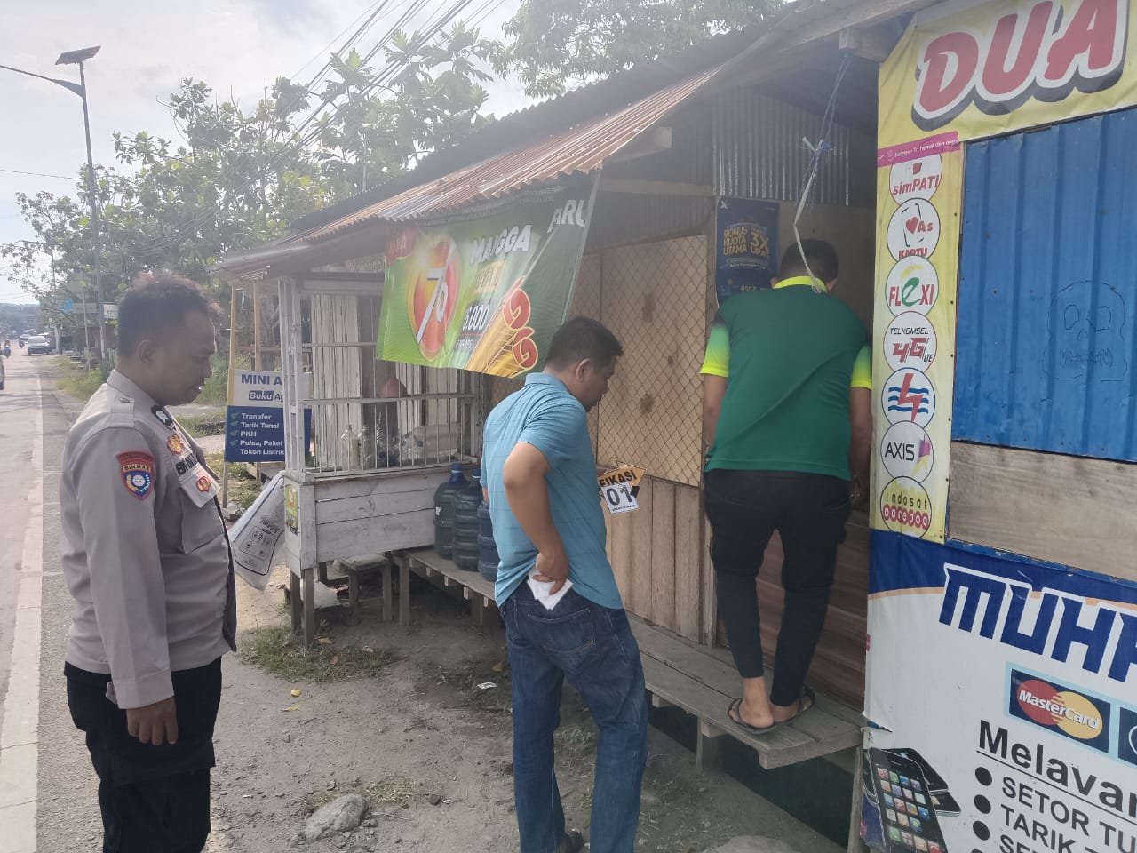 Setelah memeriksa bagian dalam kios, korban menemukan kondisi berantakan dan sejumlah barang dagangan serta uang tunai telah hilang.