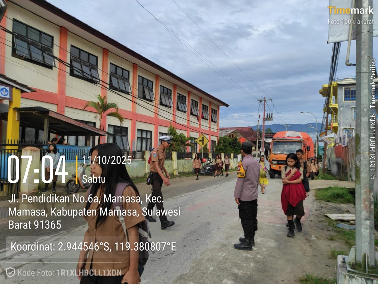 Kegiatan difokuskan di depan SMPN 1 Mamasa, yang diketahui sebagai salah satu titik rawan kemacetan saat jam masuk sekolah. Personel piket Polsek Mamasa diterjunkan untuk melakukan pengaturan lalu lintas (gatur lalin) serta memberikan imbauan kepada pengguna jalan agar senantiasa tertib, terutama dalam menggunakan helm dan menaati rambu lalu lintas.