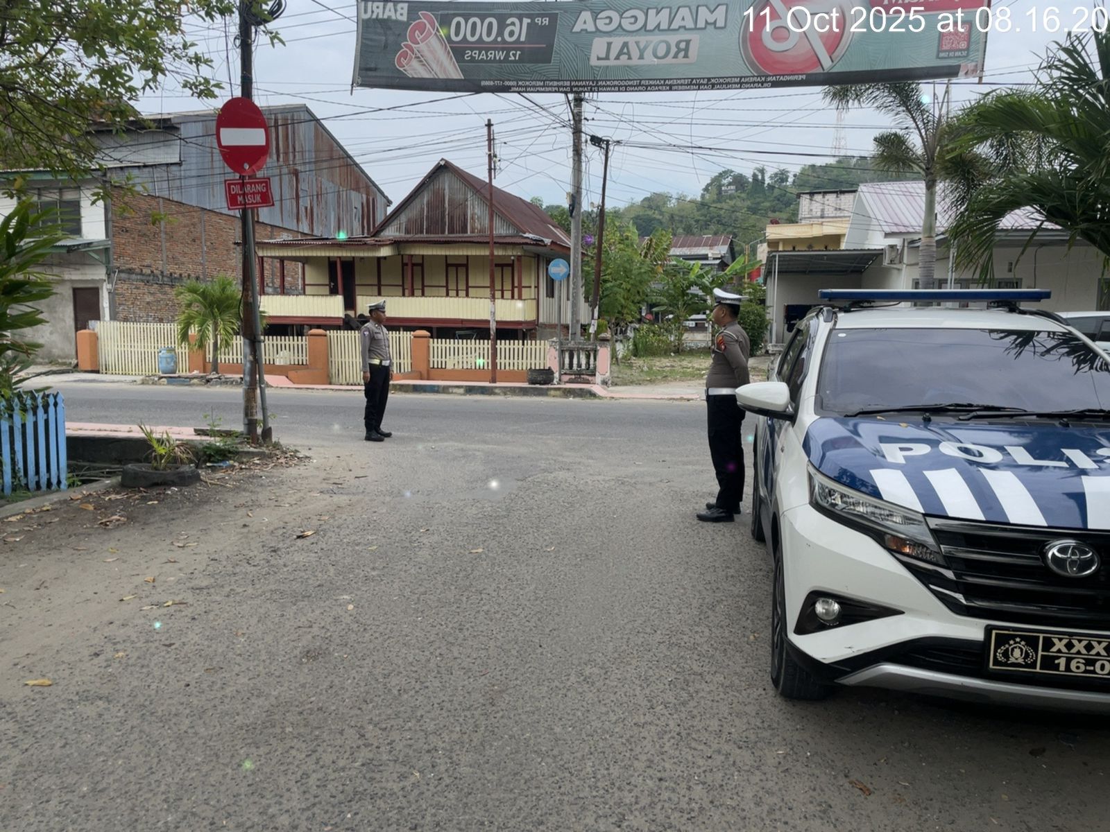 Dalam kegiatan tersebut, personel Satlantas terlihat aktif mengatur arus kendaraan, memberikan imbauan kepada pengguna jalan agar tertib berlalu lintas, serta memastikan kondisi jalan tetap kondusif bagi pengendara roda dua maupun roda empat.