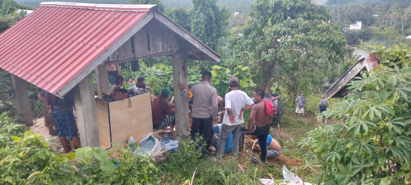 Polres Mamuju Tengah – Bhabinkamtibmas Desa Salupangkang, Polsek Tobadak, Polres Mamuju Tengah, Bripka Marselius melaksanakan kegiatan sambang sekaligus patroli dialogis dalam rangka memantau dan memberikan dukungan terhadap kegiatan pembenahan area kuburan di Desa Salupangkang, Kecamatan Tobadak, Kabupaten Mamuju Tengah, Senin (13/10/2025).