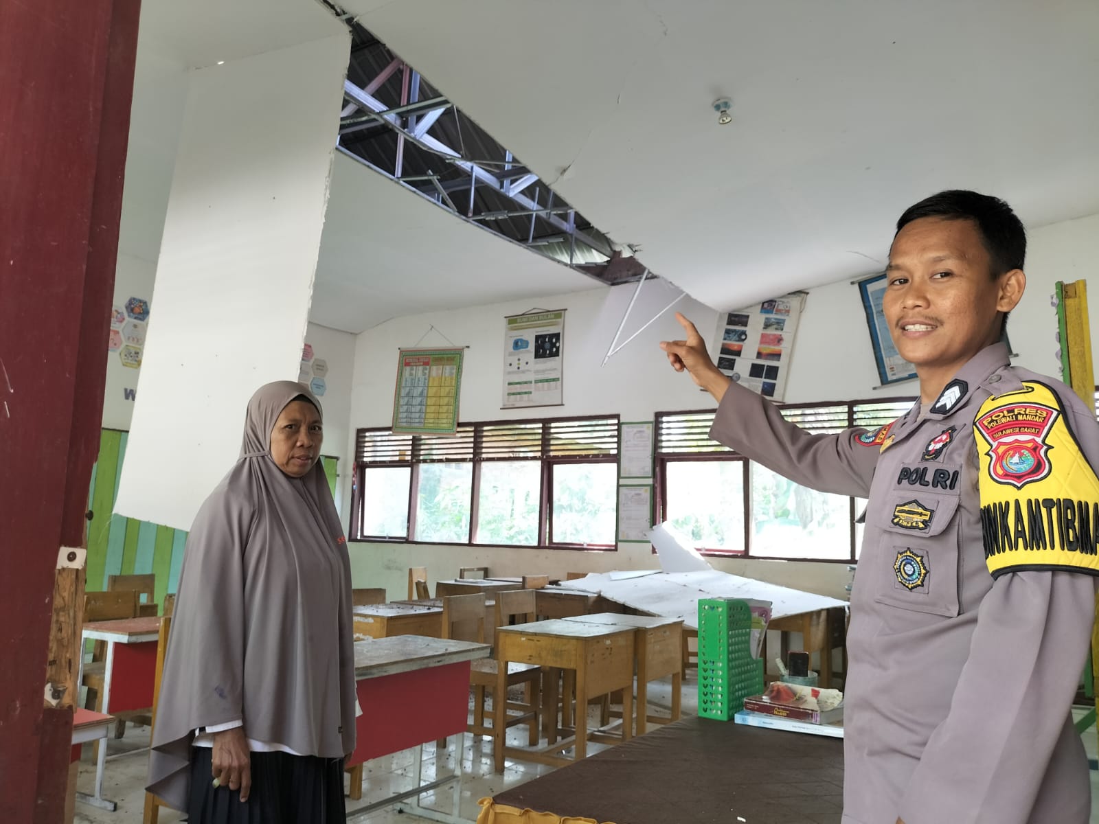 “Kerusakan cukup terlihat pada bagian atap ruang kelas, namun tidak menimbulkan korban jiwa. Saat kejadian, sekolah sudah sepi,” ujar Brigpol Sabriadi.