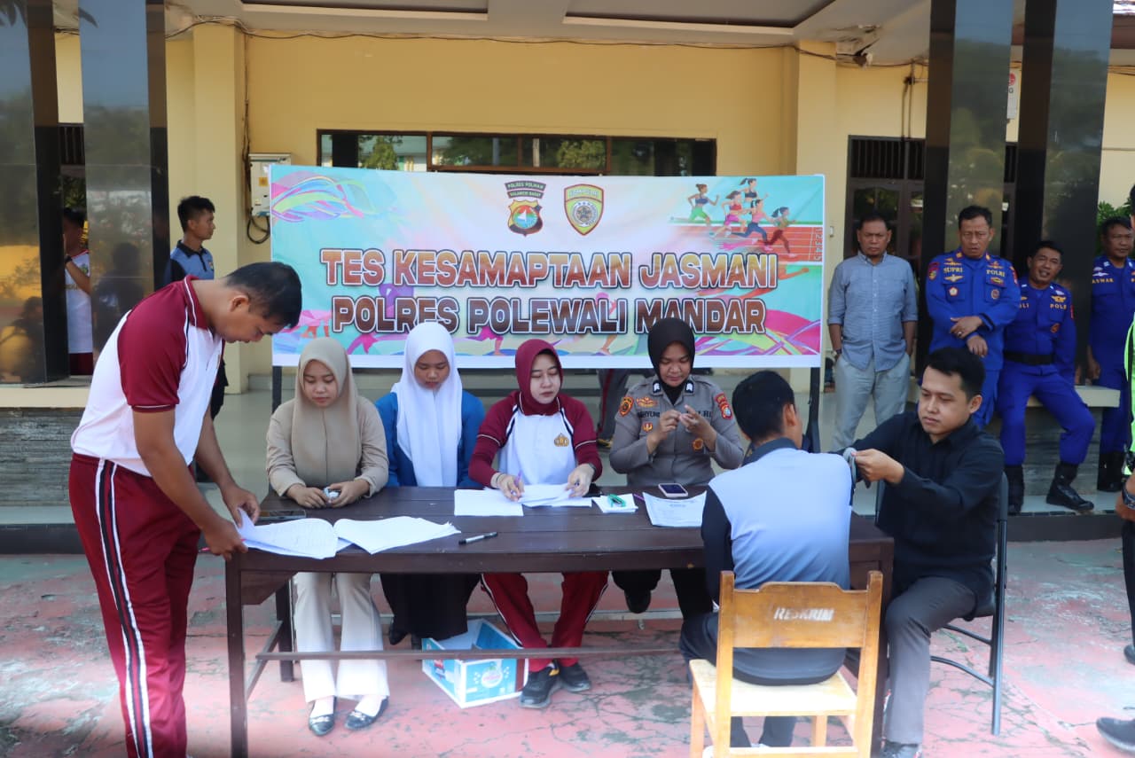 Tes kesamaptaan meliputi lari 12 menit, push-up, sit-up, pull-up, serta shuttle run, yang dipantau langsung oleh tim dari Seksi SDM Polres Polman.