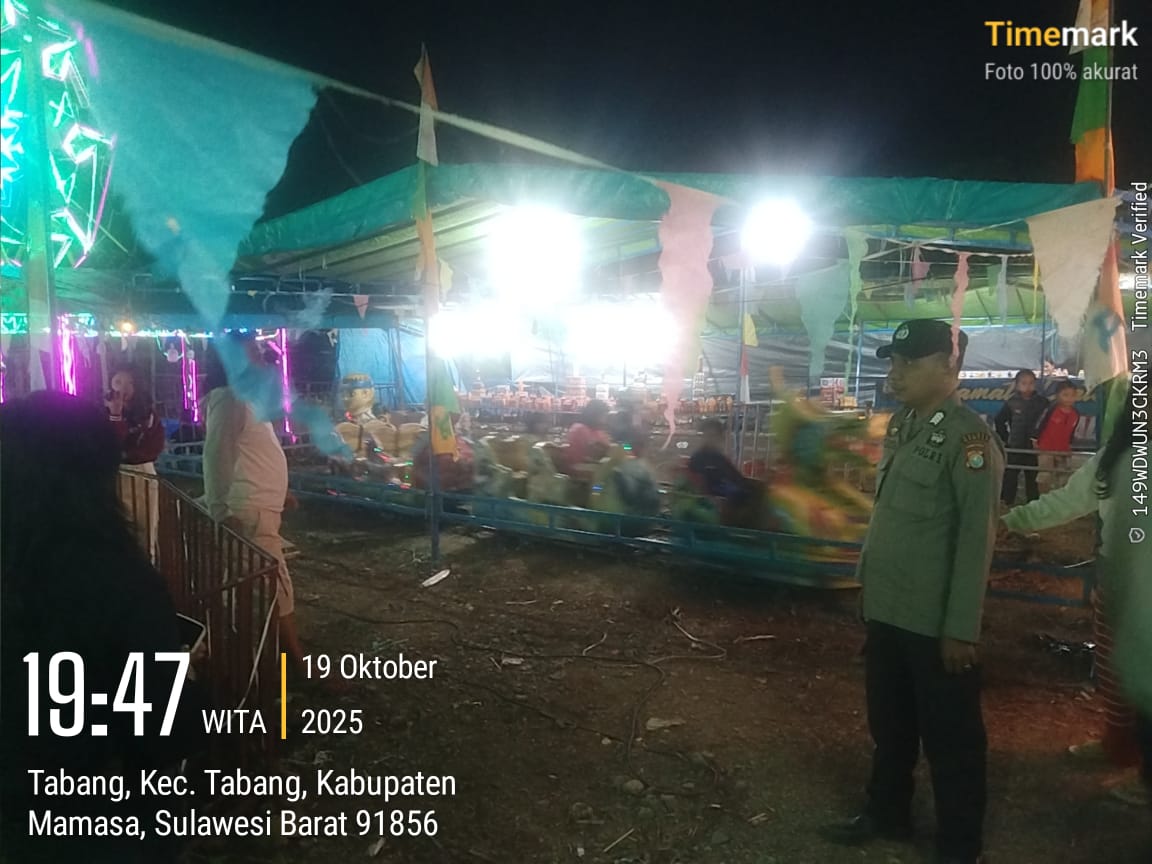 POLRES MAMASA–Personel Polsek Pana melaksanakan kegiatan monitoring dan pengamanan pasar malam yang berlangsung di Lingkungan Patambunan, Kelurahan Tabang, Kecamatan Tabang, Kabupaten Mamasa, pada Minggu malam, sekitar pukul 20.00 WITA, 19 Oktober 2025