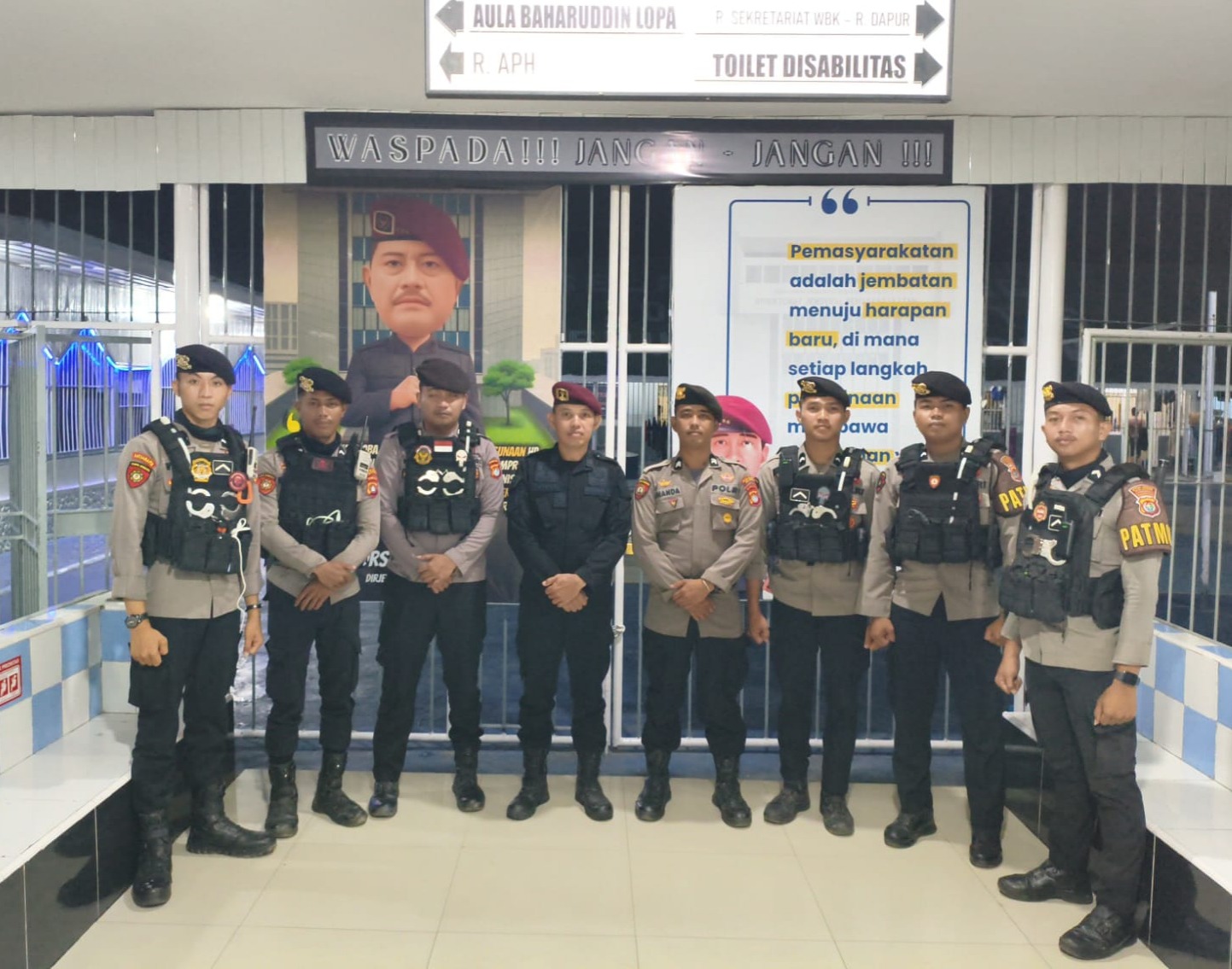 Polres Majene — Dalam rangka menjaga situasi keamanan dan ketertiban lembaga pemasyarakatan yang tetap kondusif, Satuan Samapta Polres Majene kembali melaksanakan patroli rutin di Rumah Tahanan (Rutan) Kelas II B Majene, Senin malam (27/10/25).