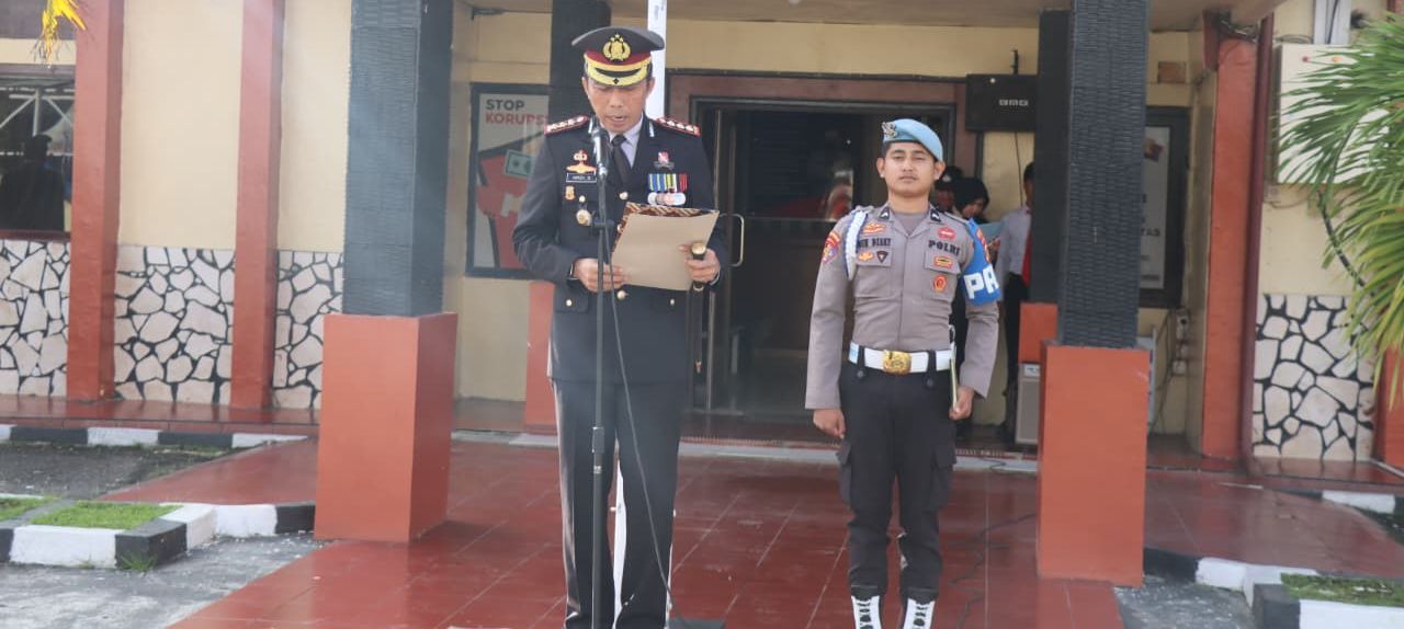 Upacara tersebut di pimpin langsung oleh Kapolresta Mamuju Kombes Pol Ardi Sutriono dengan di hadiri Pejabat Utama (PJU ) para Kasie, Perwira dan seluruh personil Polresta Mamuju