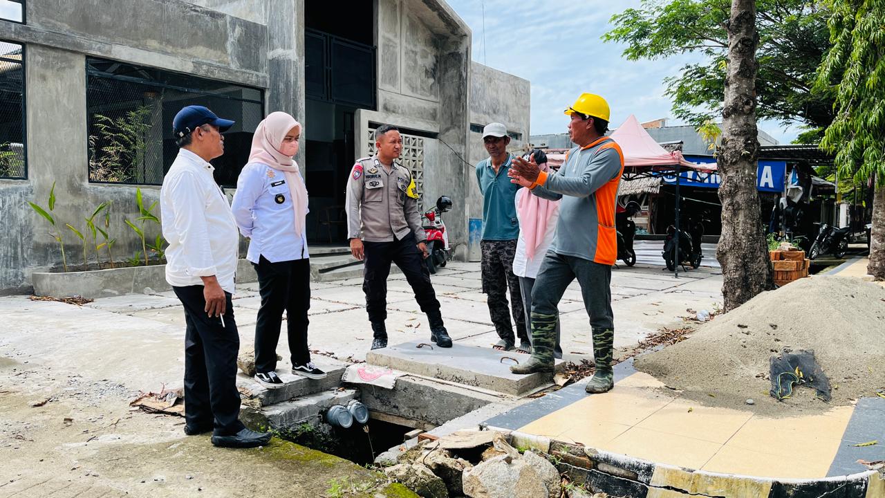 POLRES POLMAN — Bhabinkamtibmas Kelurahan Pekkabata Polsek Polewali, Bripka Hasrat M., bersama Lurah Pekkabata, Nurhayati, mendampingi Dinas Pekerjaan Umum dan Penataan Ruang (PUPR) Kabupaten Polewali Mandar dalam kegiatan sosialisasi rencana perbaikan saluran drainase di Jalan Manunggal, Kelurahan Pekkabata, Kecamatan Polewali, Rabu (29/10/25).