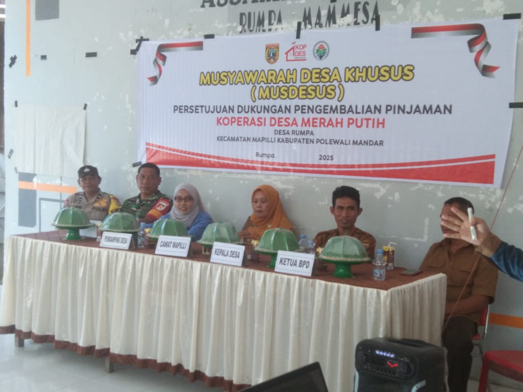 Kegiatan yang digelar di Aula Kantor Desa Rumpa, Kecamatan Mapilli, Kabupaten Polewali Mandar, ini dimulai pukul 09.30 WITA dan dihadiri oleh berbagai unsur pemerintahan serta masyarakat desa.