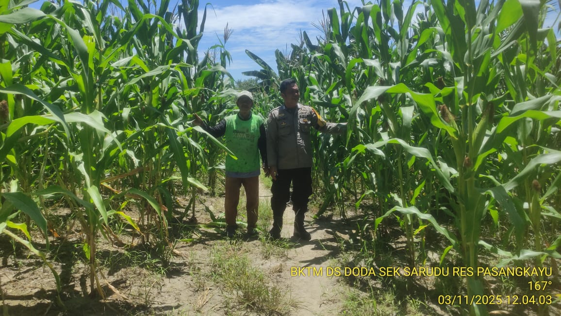 POLRES PASANGKAYU – Wujud nyata dukungan Polri terhadap program pemerintah di bidang ketahanan pangan kembali terlihat di wilayah hukum Polsek Sarudu. Bhabinkamtibmas Desa Doda, BRIPKA Sultan T, turun langsung ke lapangan melakukan sambang dan pemantauan kebun jagung milik warga binaan, Senin (03/11/2025) pagi di Dusun Batu Raya, Desa Doda, Kecamatan Sarudu, Kabupaten Pasangkayu.