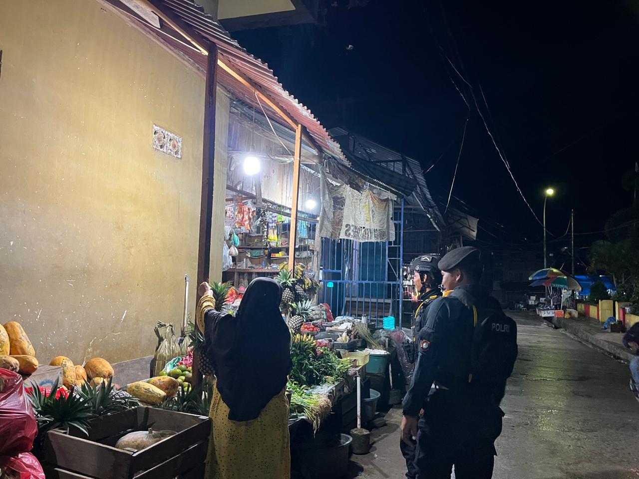 Selama patroli, personel melakukan pemantauan terhadap aktivitas masyarakat pada malam hari serta berdialog langsung dengan warga yang ditemui di lokasi untuk menyerap informasi dan menyampaikan pesan-pesan Kamtibmas.