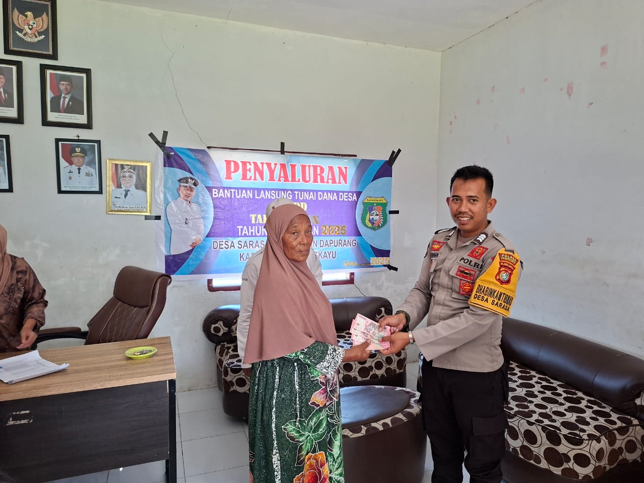 Polres Pasangkayu — Bhabinkamtibmas Polsek Sarudu BRIGPOL Burhan melaksanakan kegiatan pengamanan dan pendampingan penyaluran Bantuan Langsung Tunai Dana Desa (BLT-DD) Tahun Anggaran 2025, bertempat di Kantor Desa Sarasa, Kecamatan Dapurang, Kabupaten Pasangkayu, senin (3/11/2025)