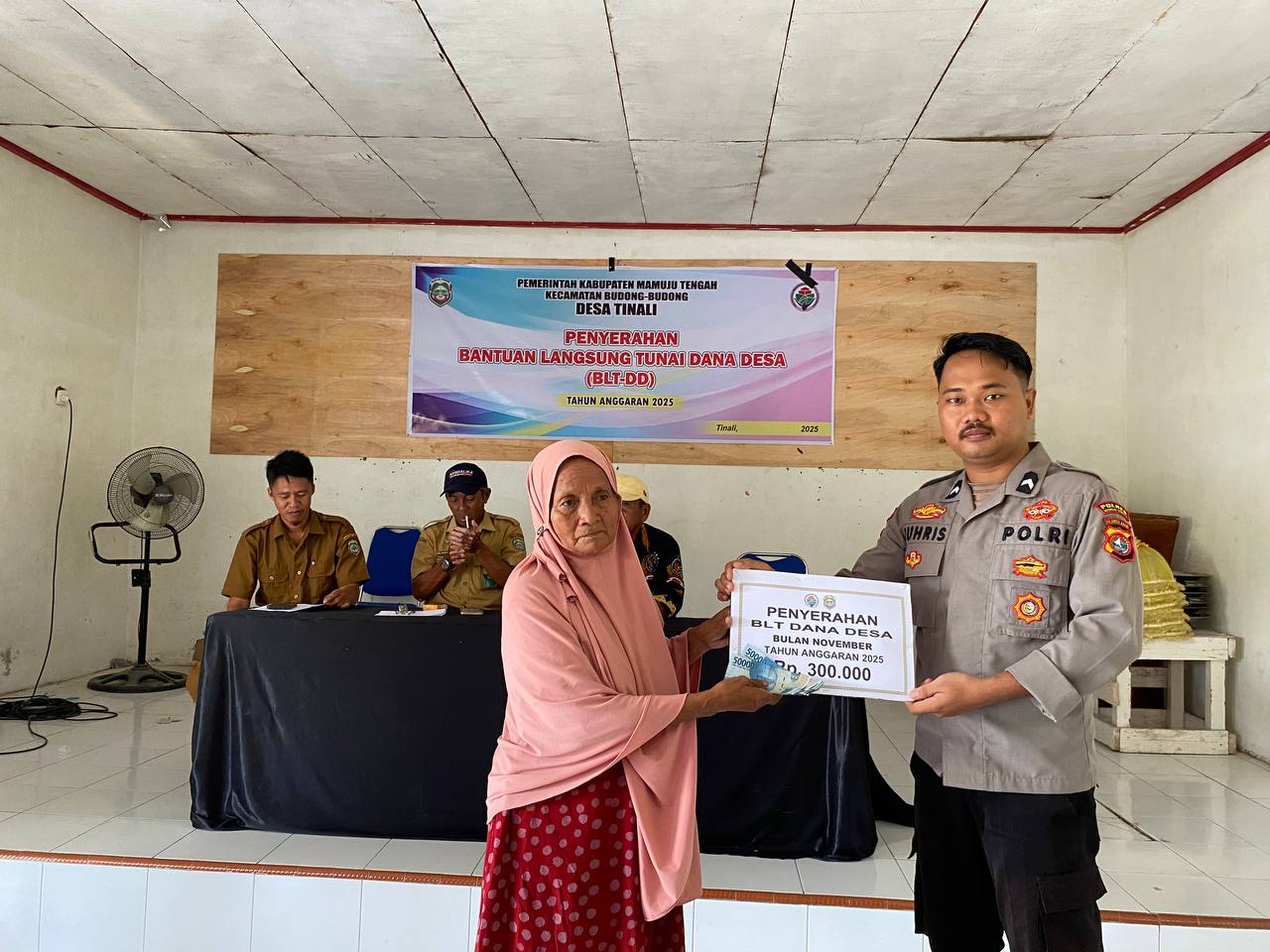 Mamuju Tengah – Personel Polsek Budong-Budong Polres Mamuju Tengah melaksanakan kegiatan pemantauan penyaluran Bantuan Langsung Tunai Dana Desa (BLT-DD) Tahun Anggaran 2025 yang berlangsung di Kantor Desa Tinali, Kecamatan Budong-Budong, Kabupaten Mamuju Tengah, pada Selasa (04/11/2025) pukul 09.00 WITA.