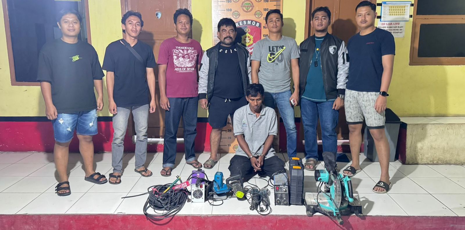 Motif Pelaku Dari hasil pemeriksaan awal, diketahui bahwa pelaku ERWIN melakukan pencurian tersebut karena rasa sakit hati terhadap atasannya (bos) yang belum membayarkan gajinya. Pelaku kemudian mengambil sejumlah alat pertukangan yang berada di lokasi tempatnya bekerja. Jelas Agustinus