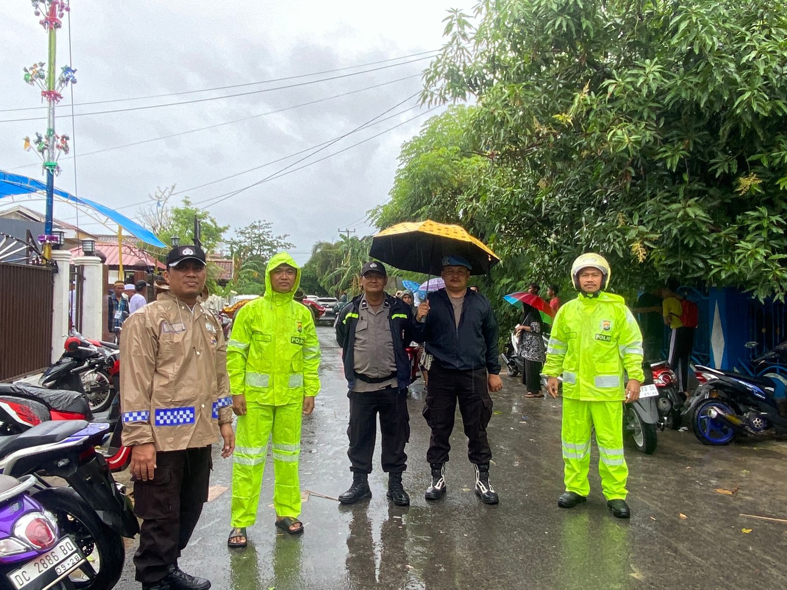 “Kami hadir untuk memberikan pelayanan terbaik kepada masyarakat. Meskipun cuaca tidak mendukung, pengamanan tetap kami laksanakan secara maksimal agar kegiatan berjalan lancar dan kondusif,” ujarnya.