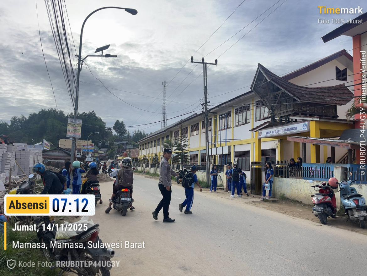 POLRES MAMASA–Dalam rangka menjaga kelancaran arus lalu lintas pada jam padat pagi, personel Polsek Mamasa melaksanakan kegiatan Penggelaran Pasukan Ambang Gangguan (AG) pada Jumat, mulai pukul 07.00 Wita. Kegiatan difokuskan pada dua titik rawan kemacetan, yakni depan SMPN 1 Mamasa dan depan Mako Polsek Mamasa, 14 November 2025